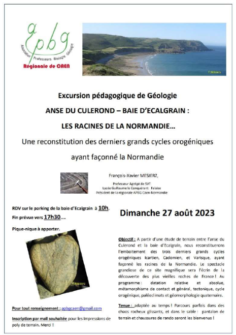 2023/08/27 Excursion aux racines de la Normandie Excursion pédagogique de Géologie : Anse du Culerond et baie d’Ecalgrain